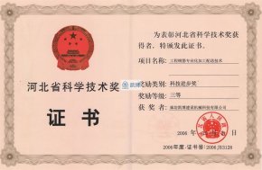 河北省科学技术奖三等奖 现代工程建设动臂式大型起重机