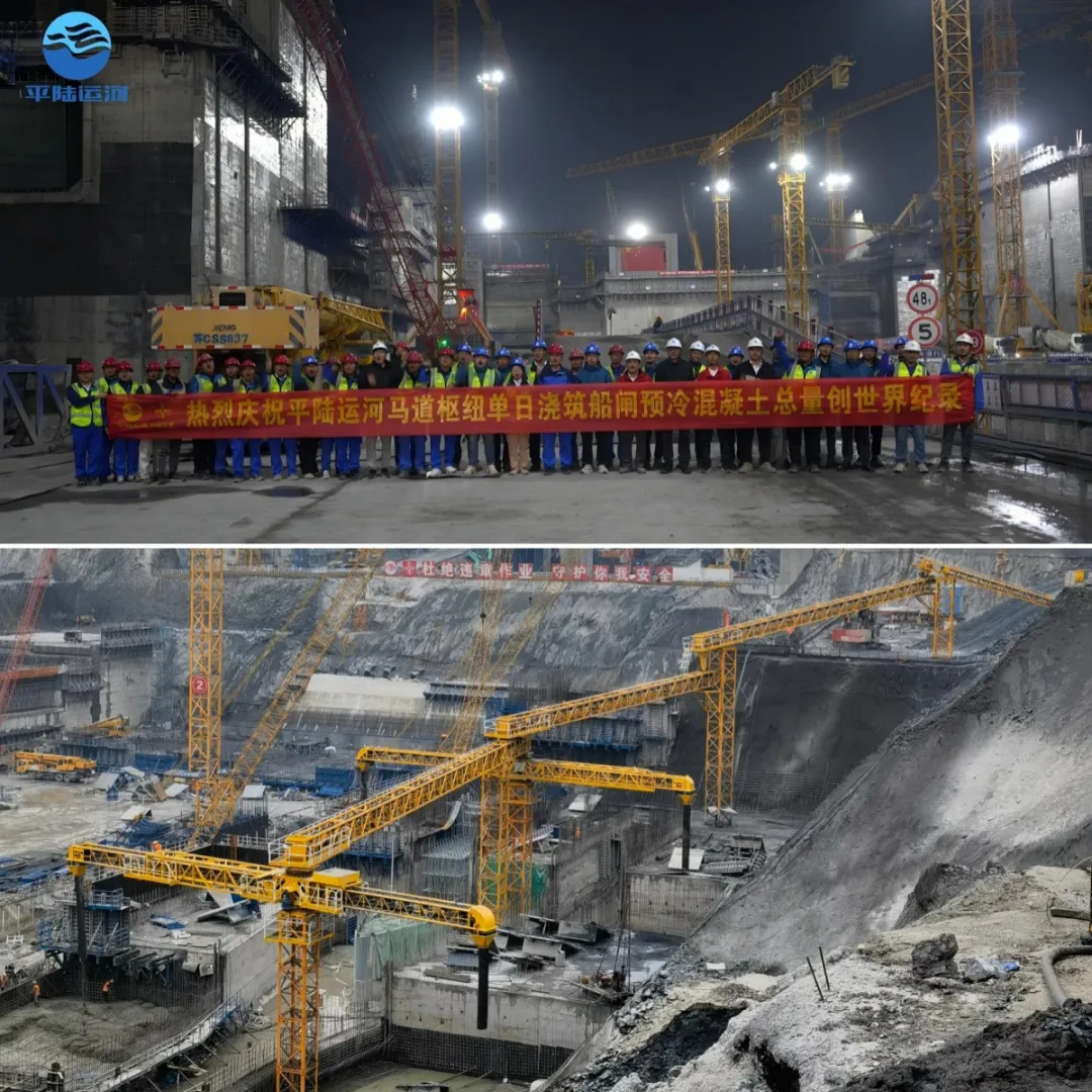 本技术在世纪工程平陆运河马道、青年、企石三大枢纽全面应用,共计24套供料线及浇筑机,浇筑机作业半径30m,单条供料线架设长度达130m,2024年11月助力项目创造了预冷混凝土单日生产浇筑量突破16409m³的世界纪录。