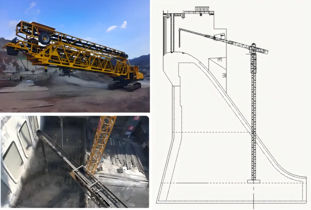 设备覆盖半径广,排量大,浇筑效率高,带式输送工作可靠,适合各种级配与流塑性水工混凝土,配合供料线技术,可实现“搅拌站-浇筑点”远程供料连续浇筑。